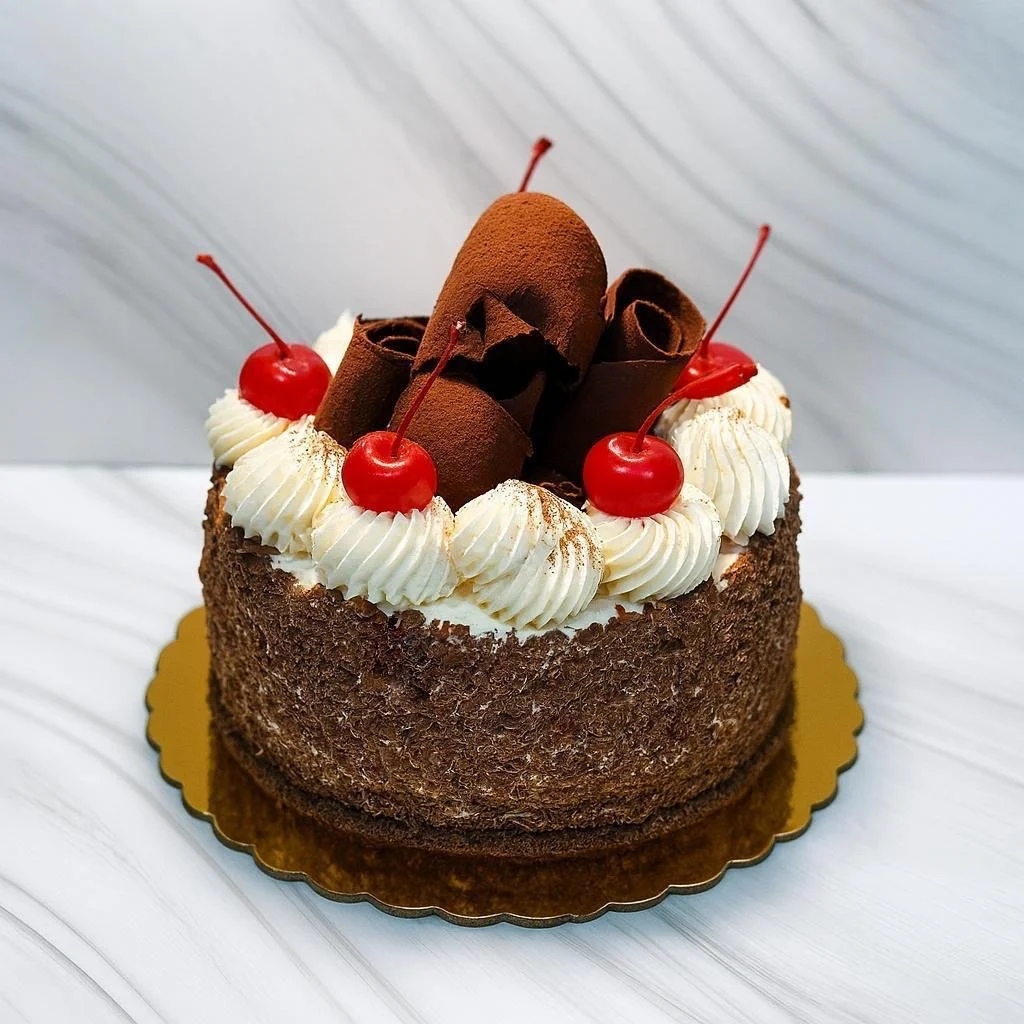 A silky, tropical delight featuring layers of creamy vanilla cheesecake and luscious mango mousse on a delicate biscuit base. Finished with a glossy mango glaze and a swirl of fresh cream, it’s a refreshing balance of sweetness and citrus perfect for summer indulgence.
